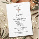 Une belle invitation Baptême simple avec une croix florale rose. Ajoutez vos détails. Tous les champs sont modifiables.