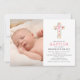 Croix florale rose Baptême Photo Invitation