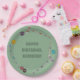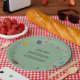 Diese Teller aus dem Party eignen sich hervorragend für Partys im Hinterhof und Picknicks, besonders wenn ein Krokettenspiel Teil der Festlichkeiten sein wird. Sie sind mit Bildern von Kroketten, Kugeln und Set aus Korbgeflecht vor einem Jadegrün. Ihre benutzerdefinierte Nachricht ist in fett dunkelgrüner Schrift.