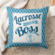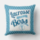 Crosse Comme Un Patron lance l'oreiller. Arrière - plan en vichy bleu. Disponible en 16 po x 16 po ou 20 po x 20 po, en coton ou en polyester. Utilisez le menu "taille" situé à droite de l'écran pour changer de coussin.