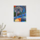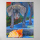 Original Malerei Titled: "Crossing Paths" von Laura Barbosa wurde innerhalb von 1 Stunde nach Eröffnung der Galerie im Tinicum Art Barn in Erwinna PA verkauft. Dieses Kunstwerk ist jetzt auf unseren zazzle-Produkten erhältlich. Ein Acrylgemälde eines Weimaraner Hundes und eines Orangen Tabby Katzenkatzers auf einem Poster.