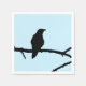 Silhouette Krähe auf einem Baumzweig vor einem himmelblauen Hintergrund.