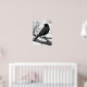 Poster in a black-and-white illustration featuring a sleek black crow perched on a gnarled, leafless branch. The bird's detailed feathers contrast sharply with the stark, skeletal tree limbs, creating a dramatic composition.