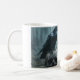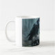 Crow sitzt auf einem Schädel mit einer gotischen B Kaffeetasse