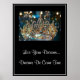 Das Poster wird mit einem Foto-Kunstdruck einer paarigen Königskröne mit Text gezeigt: Leben Sie Ihre Träume... Träume werden wahr. Passen Sie dieses Objekt an oder kaufen Sie, wie es ist. Lizenziertes Bild