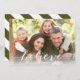 Envoyez vos salutations de Noël à vos amis et la famille utilisant ceci admirablement, carte photo simple de vacances avec le mot "croient" écrit dans un recouvrement de police de manuscrit de vert blanc et olive. Conception d'ELKE CLARKE© POUR LA GALERIE de MONOGRAMME. Remplacez la photo témoin par vos propres. L'arrière - plan rayé de vert et blanc olive soutiennent dessus de la carte. Autre colore disponible dans le magasin.