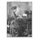 Une photographie vintage d'une femme s'asseyant à un bureau dactylographiant, et gardant à elle-même comme elle obtient son travail effectué. Elle pense à elle-même, "je peut secouer des choses au bureau aujourd'hui en étant dans une bonne humeur."