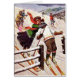 L'illustration vintage par Arthur Thiele dépeint une scène comique sur les pentes où un couple est ski de neige. La femme est une novice ou s'a hors du contrôle sur ses skiis. Afin d'essayer de rester droite et venir à un arrêt, elle saisit l'homme autour du cou, tirant son dos de tête et couvrant ses yeux de sorte qu'il ne puisse pas voir où il s'est dirigé. Il fauche une barrière, mais ses skiis sont dirigés juste dans la barrière. D'autres skiiers autour de eux regard dessus dans l'incrédulité. L'artiste allemand, Karl Robert Arthur Thiele (1860-1936) est généralement allé par l'Arthur nommé Thiele. Il était un illustrateur des livres, de la musique de feuille et des cartes postales. Il était célèbre pour ses animaux anthropomorphes comiques habillés dans l'habillement et représentés dedans humain-comme des scènes. Les teckels étaient un sujet préféré à lui. En plus des animaux, d'autres sujets qu'il a illustrés étaient des cartes postales de sports, légumes apportés à la vie, bonhommes de neige, baignant des beautés, et des cartes postales de propagande de l'ère WW1. L'Internet est plein des références confondant Karl Robert Arthur Thiele avec un autre peintre allemand de son temps appelé Jules Arthur Thiele qui a peint des paysages. Ils ne sont pas le même artiste. Cette carte est intérieur vide pour votre propre message.