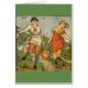 Une illustration de livre vintage d'enfants par la grue de Walter pour l'histoire "Jack et Jill" dépeint les deux d'entre eux descendant la colline, portant un seau de l'eau entre eux pendant qu'elle éclabousse le long de la route. La grue de Walter (1845-1915) était un artiste et un illustrateur anglais du livre d'enfants considéré le patriarche de l'âge d'or des livres d'enfants. La carte est intérieur vide pour votre propre message.