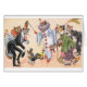 L'illustration vintage par Arthur Thiele dépeint une scène de mardi gras ou de Carnivale où un groupe de noceurs costumés de chat a trouvé à leur milieu un coup retentissant de partie… un teckel qui s'est habillé pour l'occasion et a joint la célébration. L'artiste allemand, Karl Robert Arthur Thiele (1860-1936) est généralement allé par l'Arthur nommé Thiele. Il était un illustrateur des livres, de la musique de feuille et des cartes postales. Il était célèbre pour ses animaux anthropomorphes comiques habillés dans l'habillement et représentés dedans humain-comme des scènes. Les teckels étaient un sujet préféré à lui. En plus des animaux, d'autres sujets qu'il a illustrés étaient des cartes postales de sports, légumes apportés à la vie, bonhommes de neige, baignant des beautés, et des cartes postales de propagande de l'ère WW1. L'Internet est plein des références confondant Karl Robert Arthur Thiele avec un autre peintre allemand de son temps appelé Jules Arthur Thiele qui a peint des paysages. Ils ne sont pas le même artiste. Cette carte est intérieur vide pour votre propre message.