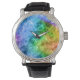 Uhr, Vintage Männeruhr mit schwarzem Lederarmband