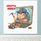 Ein kartoonisches Bild eines mürrisch aussehenden Maulwurfs, der einen Mützenhut aus einem Computerbildschirm trägt und eine winzige Pickaxe hält. Statt Dreck hat der Maulwurf neben ihm einen Haufen verschiedener Kryptowährungsmünzen. Es sieht erschöpft aus und hat eine Münzschurke auf der Stirn.