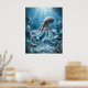 A mesmerizing crystal octopus glides through a vibrant coral reef, its flowing tentacles formed with faceted gemstone textures, clear quartz shine, and iridescent blue-violet reflections. Elegant suction details and fluid movement blend marine realism with luxurious fantasy design. Tropical fish, coral gardens, sunbeams through clear water, and drifting bubbles create a magical underwater world full of motion and color. Perfect for beach homes, bathrooms, kids rooms, ocean lovers, and collectors seeking unique premium wall art.