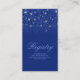 Carte d'enregistrement du Mariage de Parties scintillant Sapphire Glitz moderne glamour. Beau bleu sophistiqué aux accents de parties scintillant. Ce design mariage de parties scintillant fait partie de notre collection Mariage de Parties scintillant à Metro-Events sur Zazzle. D'autres fournitures de mariage de coordination sont disponibles. Pour des couleurs et des motifs personnalisés, veuillez contacter Metro-Event.com Veuillez consulter votre dessin dans les limites et/ou la vue de la grille avant de passer votre commande car aucun texte s'étendant au-delà des lignes de frontière rouge ne sera imprimé sur votre invitation. Si votre texte ne correspond pas aux lignes limites, essayez de réduire le texte et/ou la taille de l'invitation afin que tout le texte s'insère dans vos lignes limites.