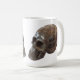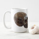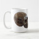 Eine Kaffeemaschine mit dem Bild eines mit versteinerten Holzkristallen geschnitzten Schädels