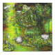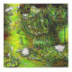 Original painting of a lush pond filled with water lily plants and vibrant foliage. The vivid colors and intricate details create a lively, natural setting. Painted by New York City, Fine Arts Artist, Gaye Elise Beda.