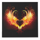 Angel fire heart with flaming wings on black background.