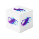 Infinity symbole with a beautiful feather painted in purple and blue bright colors on white background