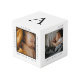 Petit et moderne simple photo bébé & naissance Statistiques garde saké photo cube. Le design est simple et minimaliste, avec une photo carré de chaque côté du cube pour afficher vos photos spéciales pour bébé. Le nom, la date, l'heure et les statistiques de naissance du bébé sont affichés dans un design simple et moderne autour du cube photo. Ajoutez le monogramme de votre bébé en haut du cube photo.