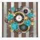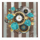 Cube Photo Steampunk Clock and Turquoise Roses on Striped