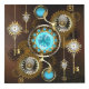 Turquoise lenses with antique watch with brass gears and golden keys on rusty, brown background. Steampunk style.