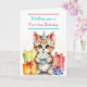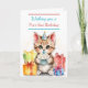 Niedliche Geburtstag für Mädchen. Niedlich für Kinder oder Erwachsene. Ein niedliches Kätzchen mit einem Kuchen, umgeben von Geburtstagsgeschenken. Sie können die Karte anpassen, indem Sie einen Namen im personalisierenden Bereich hinzufügen. Niedliche Welpe und Geburtstagskneipe inklusive Farbseite.