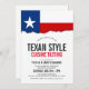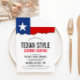 Une carte d'invitation texane sur le thème du drapeau pour votre prochain grand événement à thème Texas. Un excellent produit à utiliser pour un événement gastronomique texan, ou barbecue.