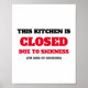 Cette affiche humoristique fermée de cuisine est idéale comme poster pour les portes de cuisine ou les murs de cuisine.
