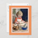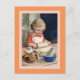 Image vintage d'une petite fille lançant de la pâtisserie pour Noël. Elle a une assiette de délicieux biscuits complétés à l'aspect délicieux à côté sur la table et les couverts de biscuits aussi. Derrière elle se trouve un arbre de Noël.