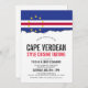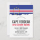 Une carte d'invitation blanche sur le thème du drapeau du Cap-Vert pour votre prochain événement gastronomique. Un excellent produit à utiliser pour un événement gastronomique cap verdien, ou un barbecue.
