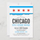 Une carte d'invitation blanche propre sur le thème du drapeau de Chicago pour votre prochain événement à thème de Chicago. Un excellent produit à utiliser pour un événement gastronomique ou un barbecue spécial sélection de nourriture.