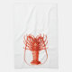 Une langouste délicieuse sur une serviette de cuisine ou de thé. Juste juste pour une cuisine côtière ou une maison de plage dans une orange de corail lumineuse. Perfectionnez pour n'importe qui qui aime le homard.