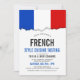 Une carte d'invitation blanche et propre sur le thème du drapeau français pour votre prochain évènement à thème français. Un excellent produit à utiliser pour un événement gastronomique ou un barbecue spécial sélection de nourriture.