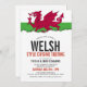 Un drapeau gallois sur le thème blanc propre carte d'invitation pour votre prochain événement sur le thème gallois. Un excellent produit à utiliser pour un événement gastronomique, une douche nuptiale, une fête de fiançailles ou un barbecue spécial de sélection de nourriture.
