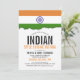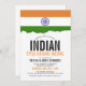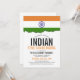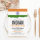 Une carte blanche blanche d'invitation sur le thème du drapeau indien pour votre prochain événement sur le thème indien. Un excellent produit à utiliser pour un événement gastronomique, une douche nuptiale, une fête de fiançailles ou un barbecue spécial de sélection de nourriture.