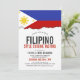 Un drapeau philippin sur le thème blanc propre carte d'invitation pour votre prochain événement sur le thème des Philippines. Un excellent produit à utiliser pour un événement gastronomique, une douche nuptiale, une fête de fiançailles ou un barbecue spécial de sélection de nourriture.