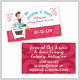 Cartes de visite super mignons avec femme au foyer de style rétro portant un tablier, petite robe noire et mitt au four, assis sur sa cuisinière, heureux d'être cuisine ou de cuisson. Des cartes magnifiques pour des cours de cuisine ou de cuisson ou d'enseignement culinaire.