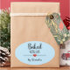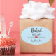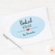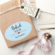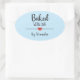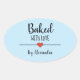 Autocollant moderne "cuit avec amour" avec une police noire sur un arrière - plan bleu clair agrémenté d'un coeur rouge mignon. Customiser du texte.