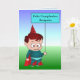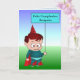 Tarjeta de felicitacion para niño en verde y azul con dibujo de bebe super heroe / Sonielito bebe