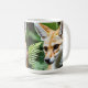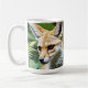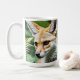 Hinter den Büschen sieht man einen Fennec-Fuchs in der Fahne