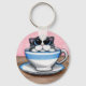 Whimsical Black Cat Schlüsselanhänger. Dieses kleine Kätzchen sucht nach einem neuen Zuhause... er beginnt sein Teacup zu überholen! Original-Kunstwerk: Acryl auf Aquarellpapier © 2008 Lisa Marie Robinson