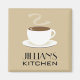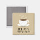 Ein Küchenmagnet mit einer Abbildung einer heißen Tasse Kaffee auf einer Untertasse. Personalisieren Sie mit Ihrem Namen. Suchen Sie nach passenden Artikeln in Jill's Paperie.