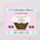 Cette grande invitation à la fête d'anniversaire du 65e anniversaire comporte un cupcake avec un arrière - plan rose aux accents d'aqua et de blanc. Tous vos détails d'invitation importants sont à l'intérieur du cupcake faisant pour une amusante invitation de fête de 65e anniversaire. Copyright henishouseo