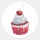 Schokoladenkuchen mit einer Kirsche auf den oberen Aufklebern.