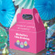 Ballotins de fête d'anniversaire dans le cupcake coloré pour enfant. Joli design amusant avec le nom de l'enfant. Dessin alimentaire sucré pour la fête avec les enfants. Boite couleur rose ou personnalisée avec poignée.