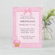Cupcake Einladung für Mädchen mit einem rosa Kuchen und einer rosa Streifen Kerze. Verwenden Sie unsere einfache Vorlage, um mit Ihren Party-Informationen anpassen.