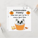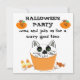 Une amusante invitation à la fête d'halloween. Arrière - plan de blanc avec texte en lettres noires. Cute chat cupcakein un ljner orange. Customisez avec toutes les informations de votre parti. Idéal aussi pour les fêtes d'enfants !