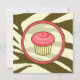 Une invitation avec un cupcake rose dessiné en marron dans un cadre rose et marron assorti. Le Arrière - plan est imprimé en zèbre marron et beige. Les fonctions latérales en face font correspondre le arrière - plan d'impression zèbre avec du texte brun et rose sur le côté pur. Personnalisez avec les détails de votre événement.