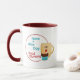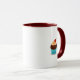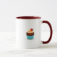 Eine Tasse eine niedliche türkisfarbene Kuchen mit gelbem Zuckerguss und die Rote Kirsche ist auch auf. mit einer niedlichen Tasse Kaffee. Personalisieren Sie Text und Foto mit nur wenigen Klicks.