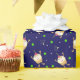 Papier mit lustigen Cupcakes-Mustern auf dunkelblauem Hintergrund